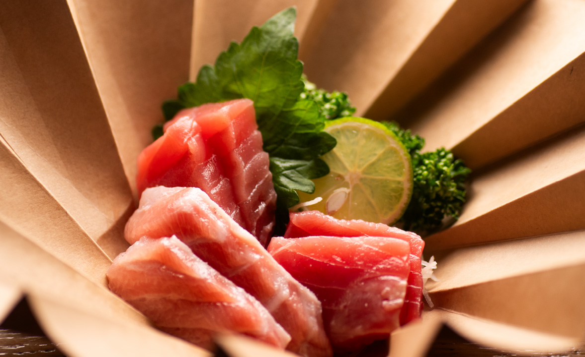 丹後産山田錦を100%使用した、「香田」をはじめとする宮津のハクレイ酒造が手がけるマグロに合う日本酒を提供します。ほのかな吟醸香と米の旨味、爽やかな酸の一体感が心地よく、マグロとも好相性。日常の喧騒から解放され、おちょこを片手に語らう優雅なひとときを。