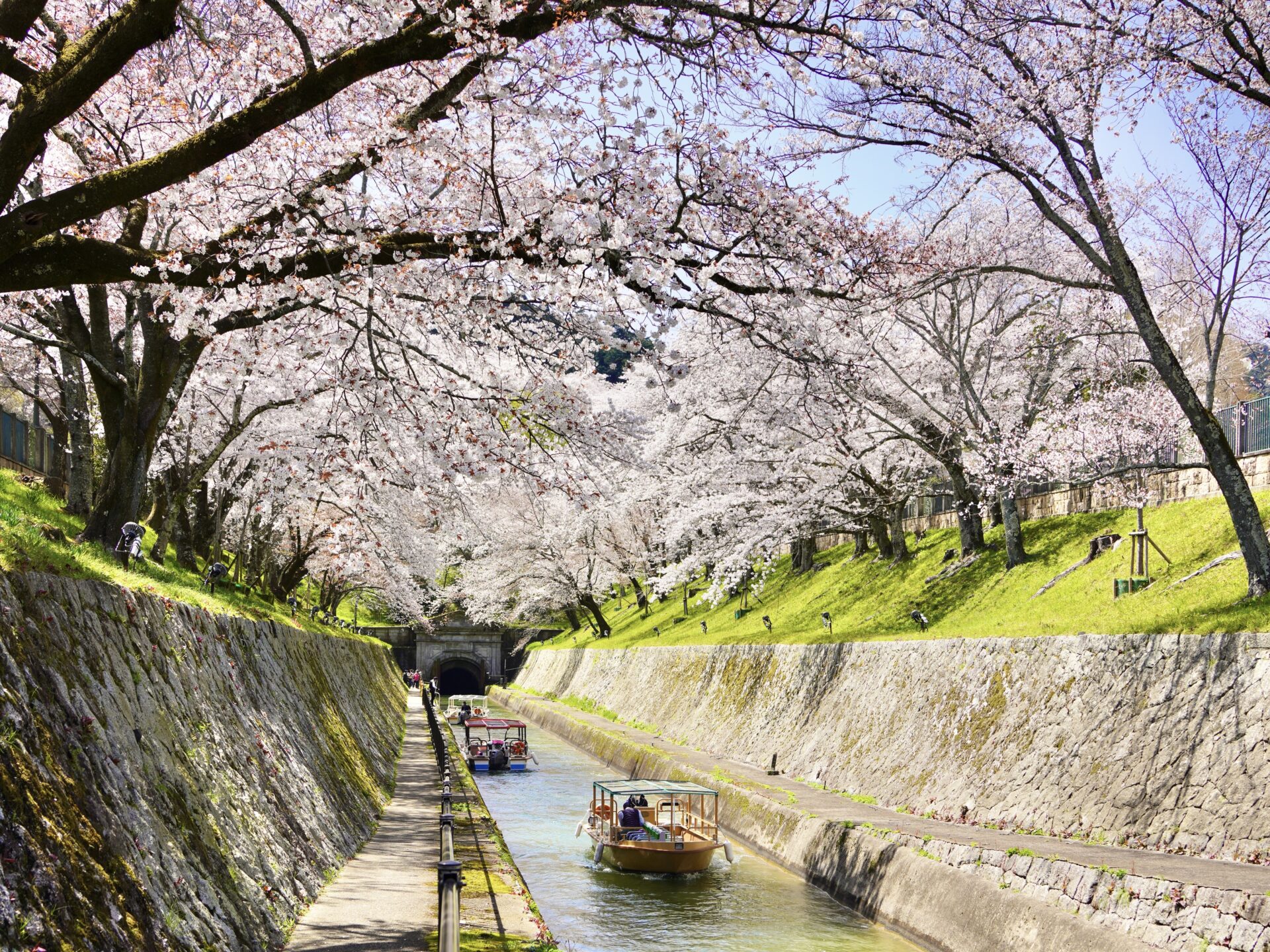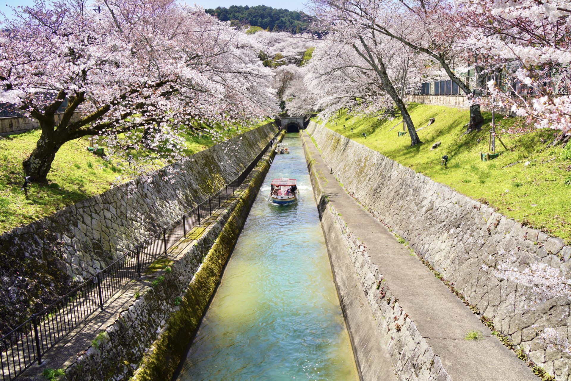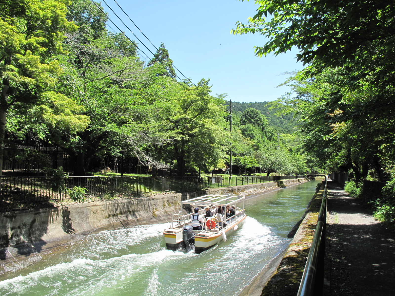 びわ湖疏水船は春と秋の期間限定運航で、京都と滋賀をつなぐ第1疏水やトンネル、疏水沿いの自然を満喫できます。