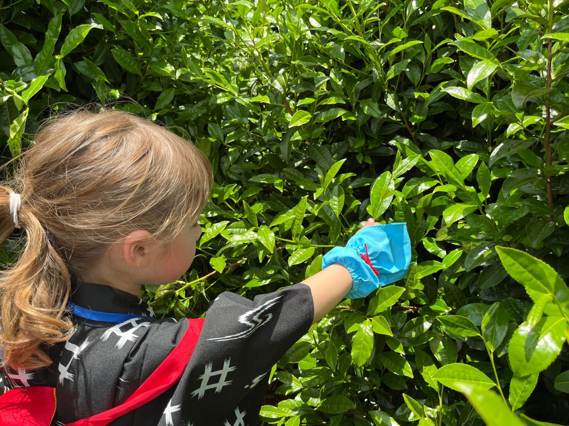 ・茶園での茶摘み、茶葉の扱い方などを学びます。