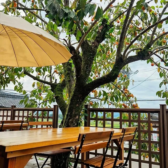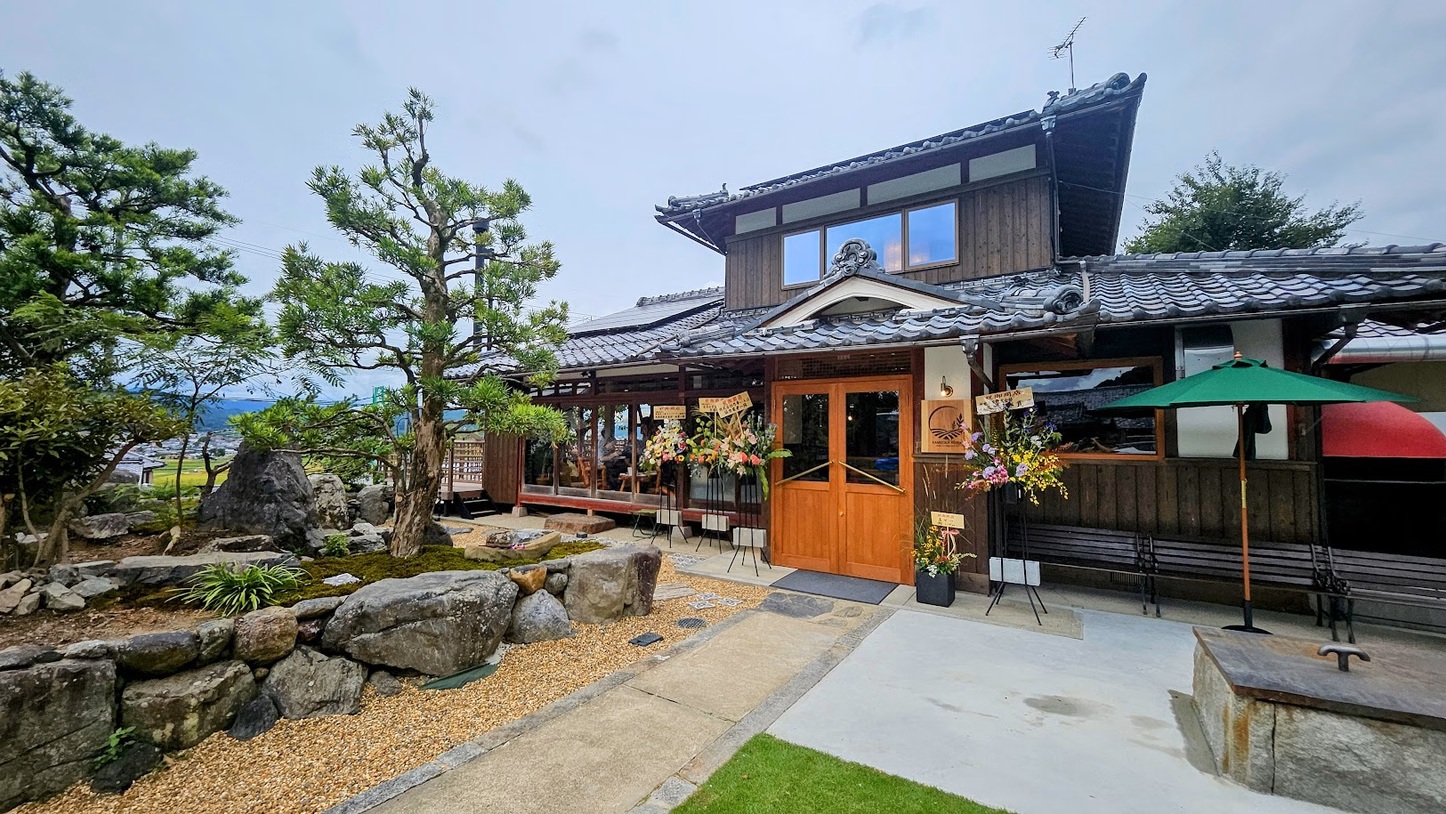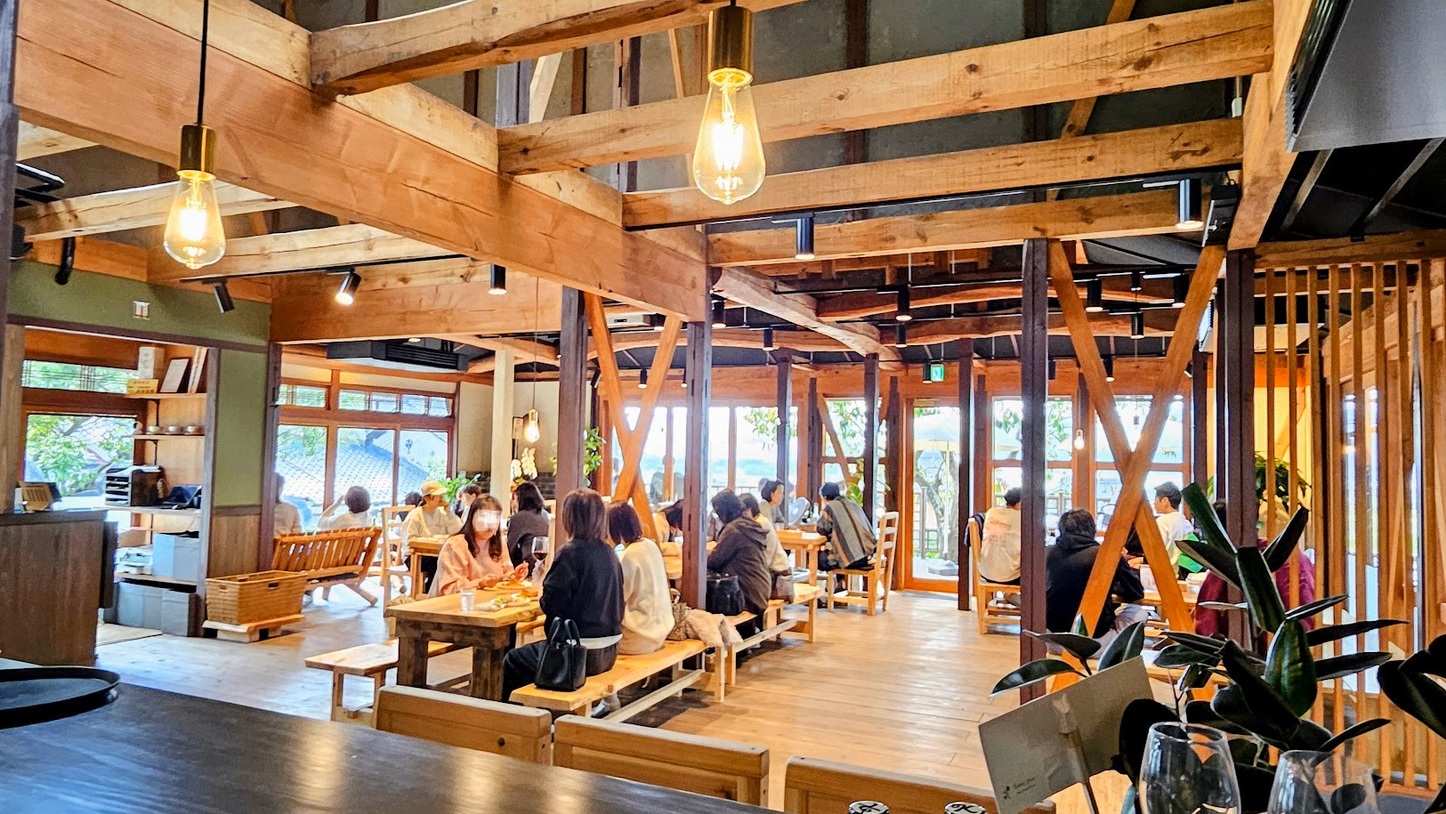 昼食は、出雲大神宮近くの古民家を洗練された空間へと再生したKAMEOKA HIMEKIへ。地元の有機野菜を中心とした“Farm to Table”の料理を、木の温もりに満ちた店内や亀岡平野を望むテラスでゆったりと堪能します。